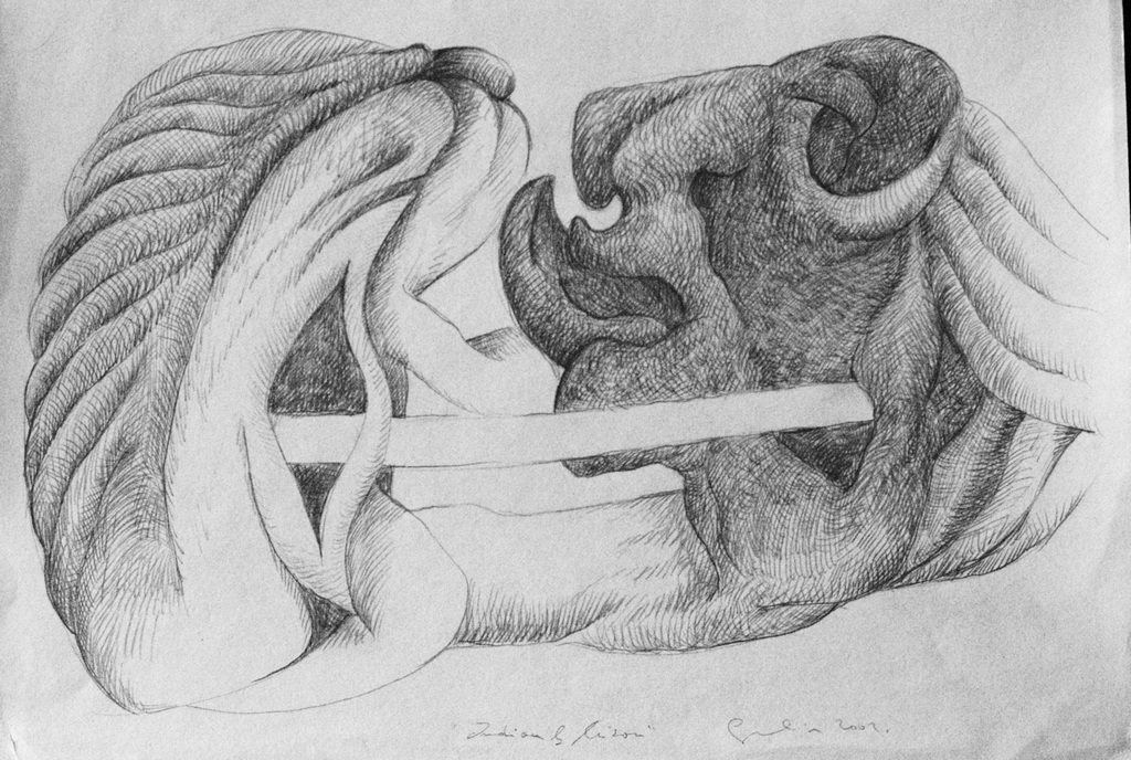 LOACOON AND HIS SONS, ink on paper, 12x9, 1984 |