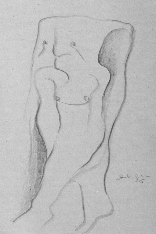 85 REMINISCENT OF (My)BODY CONDITION, pencil on paper, 12x8, 1985 |
