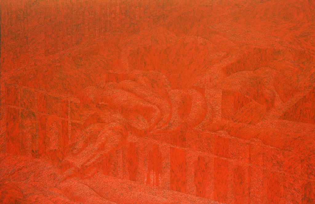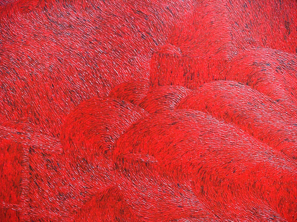 FALL, 9-25-2011, 44 59 58.47 N, 93 16 16.96 W, ( acrylic on canvas, 55x92, 2011), detail |